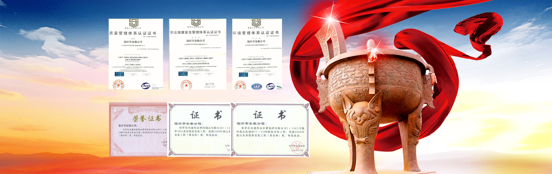 山東臨安建設(shè)有限公司(原名臨沂市安裝公司)始建于一九六六年,是由老國企改制的股份制企業(yè),公司總部位于羅莊區(qū)通達路211號,現(xiàn)有職工1000余名,各類工程經(jīng)濟技術(shù)人員816名,其中高中級職稱64名,初級職稱204人。主要從事機電工程施工總承包,電力施工總承包,石油化工施工總承包,建筑裝飾裝修施工總承包,鍋爐安裝、改造I級(參數(shù)不限),GB1、GB2(2)級、GC1級、GD1級壓力管道安裝,起重機械B級安裝,電力設(shè)施承裝、承試,并取得了GB/T19001-2008質(zhì)量管理體系認證證書、GB/T28001-2011職業(yè)健康安全管理體系認證證書、GB/T24001-2004環(huán)境管理體系認證證書,資信等級“AAA”級。